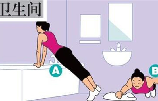 采用俯卧撑的姿势,双手撑在浴缸或者洗手台的边缘(位置越高越省力)。