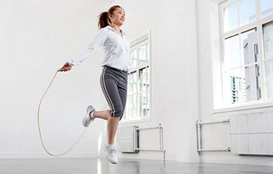 保持跑步的动作,单腿轮流跳过绳子。练熟后尽量快速地跳,这样才能有效减掉腿部多余赘肉。