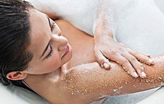 在沐浴后一样也可以使用,先把一大匙粗盐撒在手掌上,直接地按摩全身或身体上想要瘦的部位,如:腹部、手臂四周,大腿,但是记得要轻一点,搓得太过分可是会导致皮肤变得更粗糙喔。(若是你的肌肤比较敏感,无法使用一般的粗盐,你也可以购买一种比较细的沐浴盐来用。)