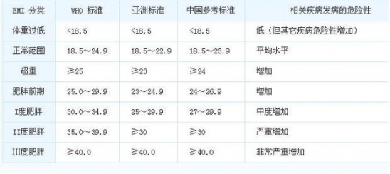 因此,如果您BMI低于18.5,则您需要增强锻炼,增加营养,适当增重;如果您BMI大于或接近于24,就可以考虑减肥了。