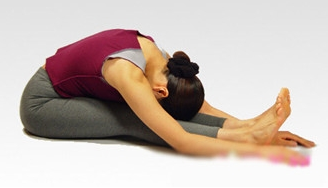 2、慢慢将身体向前压,颈同头都要向下望,维持 15 至 30 秒。左右腿交换重叠再做一次。