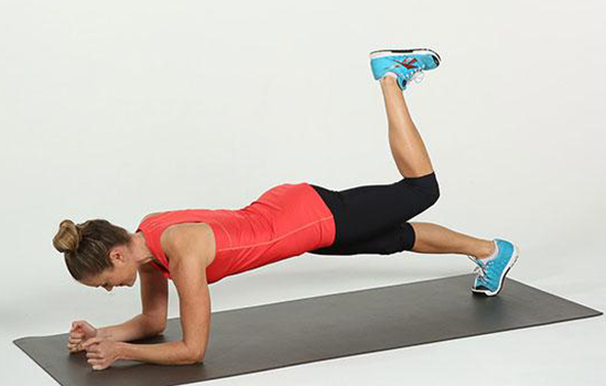 提示:这个动作可以收紧大腿后侧的肌肉,紧致双腿,还能锻炼腰腹肌肉。