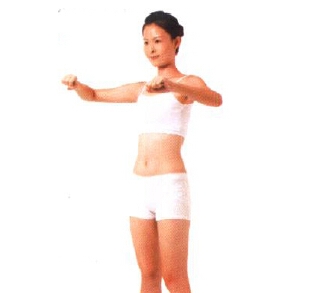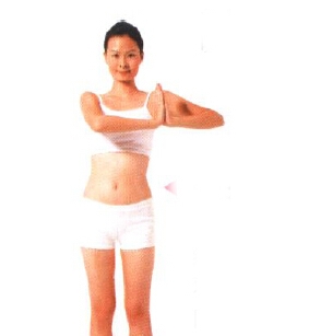 要点:手掌向内挤压时要用力,左右转动时手肘亦要保持与胸口平衡。