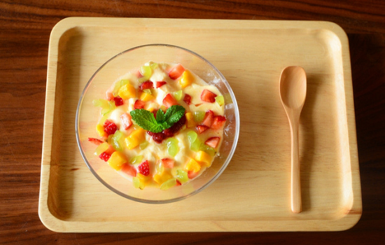 3、 如果喜欢爽滑口感的可以将芒果打成泥,然后与酸奶混合,或者直接将果肉与酸奶混合,香气四溢。