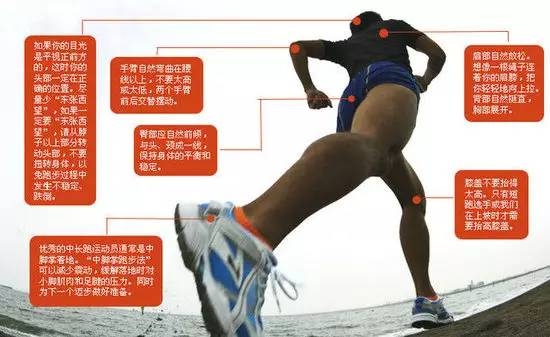 另外,有人重心过度向前,反而变成驼背姿势,也是错误动作。跑步时要保持背部挺直、头与脚呈一直线,才能较好的保护到脊椎,不让脊椎承受多余的压力。