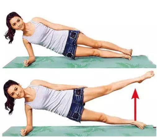 侧身平躺,以右手前臂撑地,让膝盖以上部位离地,使得身体呈现一斜直线。