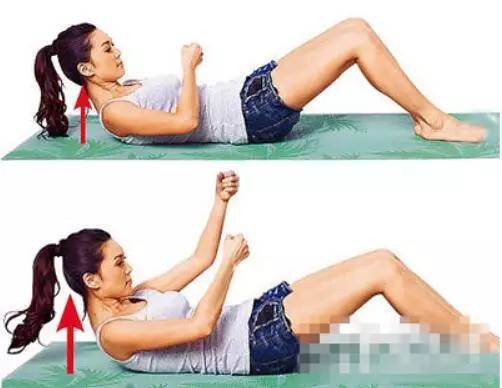 下背部保持贴地 ,用腹部力量抬起上半身,右手不动,左手握拳悬空于右手上,左右手轮流往上抓20下为1回,做4回。