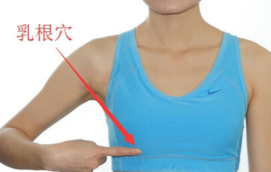 按摩手法:用指腹按压乳根穴3秒,然后慢慢松开手指,每天刺激这个穴位数次。