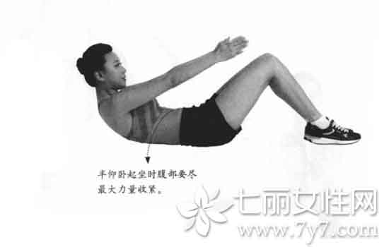 运动功效:屈腿半仰卧起坐在刺激腰腹部肌肉的同时不会对腰部造成负担,若双腿保持弯曲抬起的姿势,可以使腹部长时间维持紧张的状态,瘦腰效果更佳。