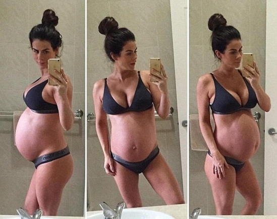 直到怀孕34周,索菲才叫停锻炼。图为索菲记录的怀孕期间身材变化: