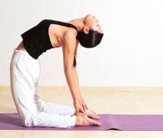 2.身保持直立后自然向后仰,直至双手能抓住脚踝为止,使身体最大限度地向后弯曲。