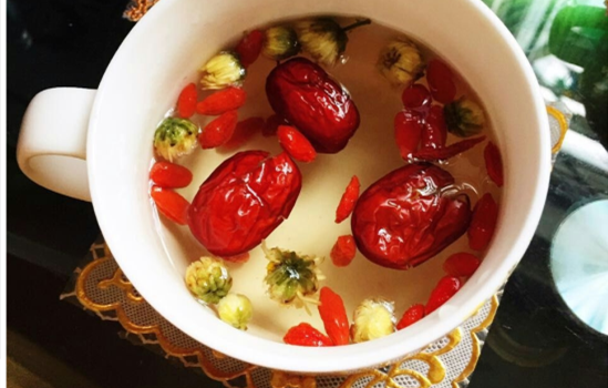 制作:将枸杞子、白菊花同时放入较大的有盖杯中,用沸水冲泡,加盖焖15分钟后可开始饮用。