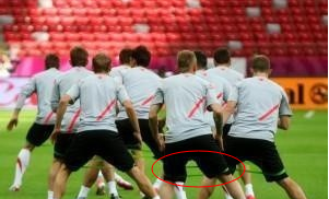1.在膝关节或踝关节处佩戴弹力带或弹力圈,半蹲下来(见下图)。