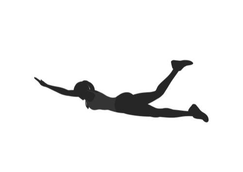 1.双臂、双腿、上半身离地。头与脊椎保持自然直线,头部不要过度上扬。左腿和右臂同时向上抬起,