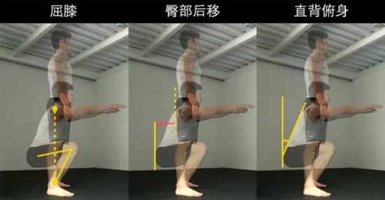 深蹲的下蹲起立是3个动作的复合: