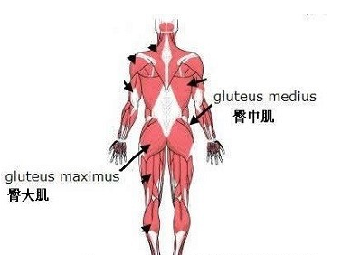 臀大肌是人体内最大的肌肉,它从骨盆后面延伸到股的上部。臀大肌也与其它数块肌肉一起形成臀部。具体看下图: