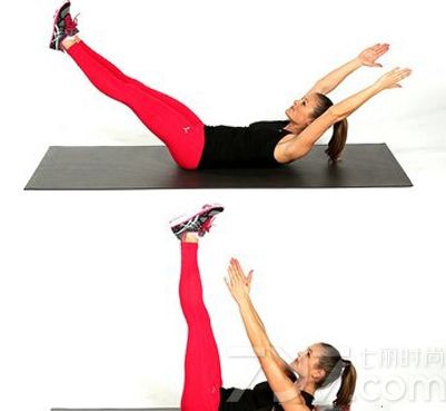 (1)平躺至瑜珈垫上。(3)同时升起四肢,呈现V字型。回到动作(2),反覆操作即可。