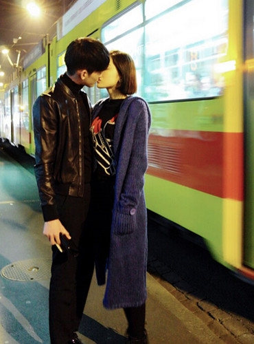 何穗最新街拍,灰色毛衣+墨绿色光泽感半裙,文艺慵懒,少女感十足。马海毛毛衣来自H&M,手提包和粉色毛拖鞋均来自Gucci,半裙来自Tibi 2016