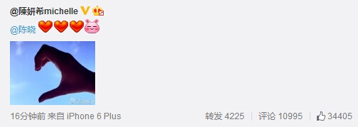 8月26日,有媒体曝光陈晓陈妍希恋情,随后两人的经纪公司也侧面回应了两人的恋情。27日,陈晓在微博上霸气示爱陈妍希,也是首次正式承认了恋情。