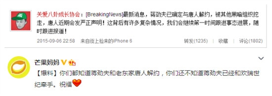 近日一直有消息爆出,蒋劲夫[已和老东家唐人解约,被别家公司挖走,而唐人也曾一度挽留。9月6日,有知名八卦博主爆料,发布最新消息,称:“蒋劲夫已确定与唐人解约,被其他黑暗组织挖走,唐人近期会发严正声明!这背后有许多复杂情况。”