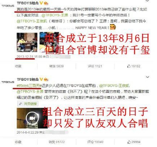 如参加综艺节目《康熙来了》因为站位靠前,被经纪人拉到后面;组合成立三周年的时候只发了王俊凯、王源 双人合唱视频;三人同时在场的时候,官微只发王俊凯、王源双人图片。大批易烊千玺的死忠粉表示将力挺偶像到底。