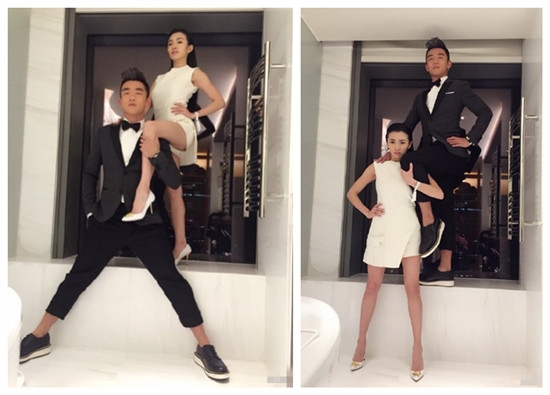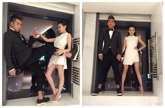 黄晓明baby大婚夜晚,郑恺也和女友秀起恩爱。小两口在厕所摆出各种抬腿扮酷的姿势合影,自侃是屎密司夫妇。