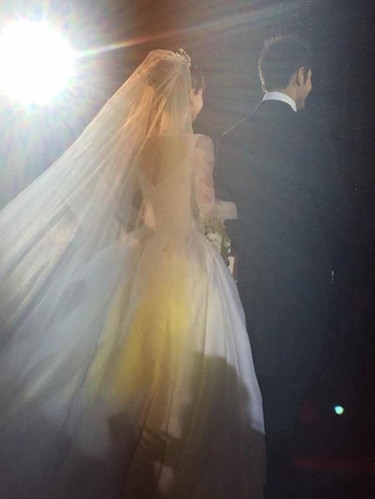 9日凌晨,Angelababy在微博晒出一张婚礼现场手挽黄晓明的背影照,并简单地在微博写道:“感谢大家。”并配上了心形表情。
