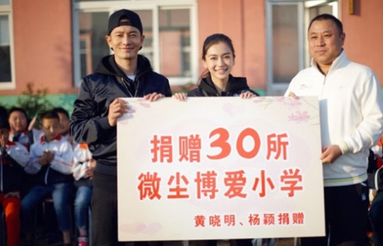 随后,两人前往黄晓明捐建的博爱小学,当众宣布要捐赠30所博爱小学,并为300个“关爱宝贝”提供救助,共捐出200多万元善款。