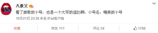 最近人气爆棚的胡歌,三剧连发,开启刷屏模式,经常在微博与粉丝互动,并且一直处于热搜榜前列,继此前“胡歌前女友”“隐形富豪胡歌”的话题被刷上热搜榜后,22日,微博认证为八教父的网友爆料,发现了胡歌小号“嘹亮的小号”。