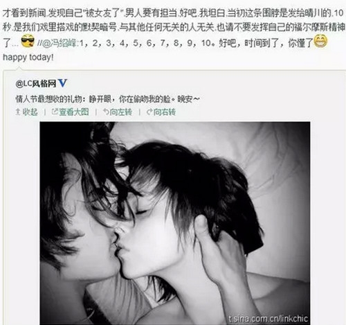 那半年时间里冯叔发过无数“示爱”幂幂的微博,没有点名幂幂的微博也都很引人深思,冯叔与大幂幂的关系暧昧到了顶点。