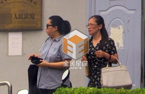 在经过一个小时的交涉沟通之后众人终于走出法院,只见侯某某与手拿厚厚文案袋的律师先行走出,张某和訾某紧随其后。