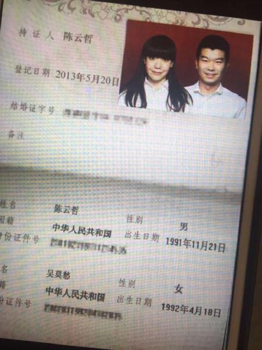 据照片显示,吴莫愁是1992年出生,他的富二代丈夫则是1991年出生。不过照片中吴莫愁的刘海遮住了眉毛,有网友提出质疑称:“结婚证眉毛不用露出来吗?”