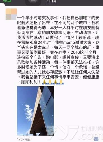 日前,主持人乐嘉在录制综艺节目时出现意外,导致睾丸破裂,一时间,关于如何在节目录制期间保障嘉宾人身安全的话题引起了网友的广泛讨论。18日,吴莫愁经纪人发朋友圈,透露莫愁在录制节目时不慎摔伤,紧急送往医院进行治疗:“ct做完了,情况比较乐观,现在留院观察24小时,我替momo谢谢大家”