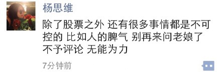 文章的经纪人杨天真在自己朋友圈也谈及此事:“很多事都是不可控的,比如人的脾气,别再来问老娘了,不予评论无能为力。”话语中充满了无奈。