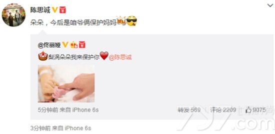随后,陈思诚转发该微博,称:“朵朵,今后是咱爷俩保护妈妈”。据悉,宝宝今天降生,是个小男孩。