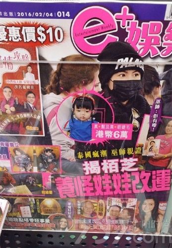 日前,港媒曝光张柏芝一张机场照,杂志引用“泰国巫师亲征 揭张柏芝养怪娃娃改运”为标题,并附上怪娃娃的照片引人遐想,此前就有报道张柏芝养小鬼求转运。