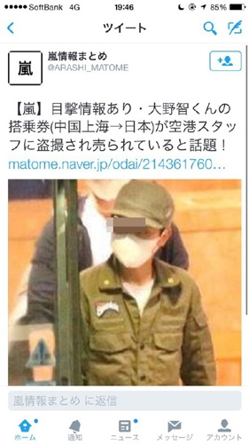 日前,日本偶像大野智前来上海为个展做准备,未料到他乘坐飞机的存根却被航空公司的某名员工挂在网上出售,票根上也显示出大量个人信息。此事在中日两国粉丝中都引发了骚动,甚至影响到了航空公司。