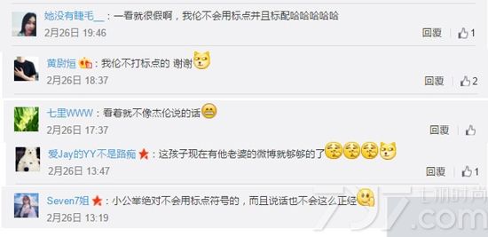 另外,周杰伦的歌迷官方微博上也发出公告,表明周董曾说过自己不会开设个人微博,而「MRJ台湾官方」是唯一的官方帐号,要其他粉丝特别小心,有歌迷则开玩笑表示,周杰伦哪需要个人微博,「这孩子现在有他老婆的微博就够了」。
