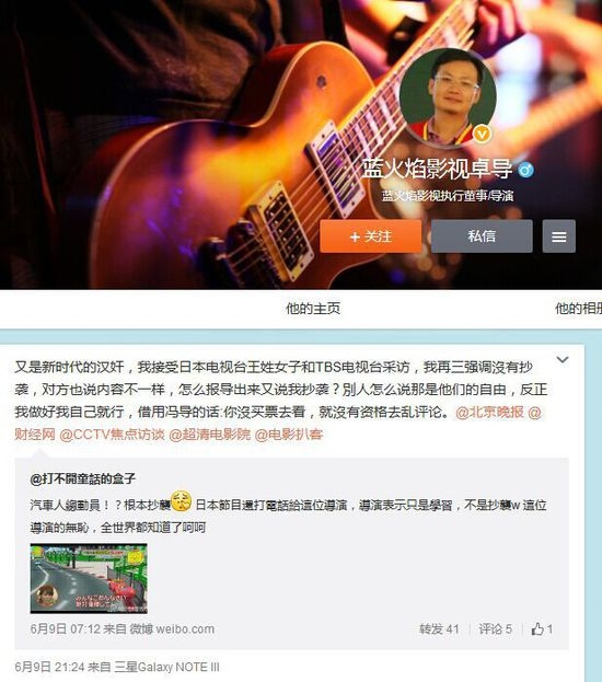 然而,还是有网友表示不相信出品方“原创”的说法。对此,上月9日,该片导演卓建荣又在微博上开骂,痛批日媒为“新时代的汉奸”,称“我接受日本电视台王姓女子和TBS电视台采访,我再三强调沒有抄袭,对方也说内容不一样,怎么报导出来又说我抄袭?別人怎么说那是他们的自由,反正我做好我自己就行”。