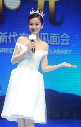 7月28日,baby头戴皇冠,身穿低V公主裙,脚蹬恨天高,亮相上海为代言的化妆品站台。现场被问及“怀孕”、“退出跑男”等敏感话题,都予以否认。