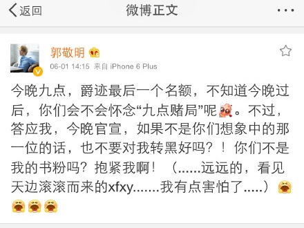 演员还未公布就赚足了话题,想必郭导也会偷着乐吧。那这最后一名演员到底是此前热传的陈学冬?还是今天被炒起话题来的鹿晗?今晚九点,就能给你答案!