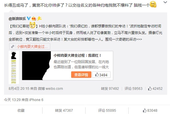 虽然平日里关于明星艺人的八卦满天飞,但万万没想到还有新浪娱乐亲自出马手撕耍大牌小鲜肉的一天,围观群众也纷纷表示喜闻乐见。