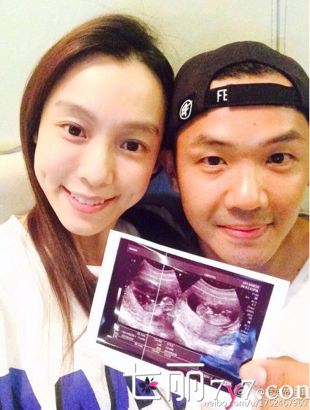 8月24日在微博上发出了B超照片,称自己怀上了双胞胎,而且当时已经给两位宝宝取好了名字,大小熊猫,附上了两人与肚子宝宝的合影,幸福满满。