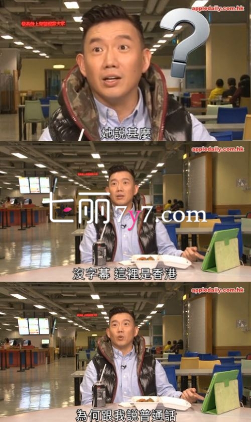 在香港媒体3月6日发布的一则视频中,当一名观众用普通话提问时,杜汶泽露出了“傻强”般的“无辜”表情,回答说:“你说什么?又没字幕,这里是香港,你干嘛说普通话……”