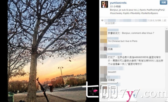 近日身在法国,时常上传生活照与粉丝分享互动,Yumi上传一张一字马的劈腿照引来热议。由于10日才爆Yumi狠甩赌王儿子何猷君,转而恋上男模郭子豪,让她被冠上劈腿罪名,更传出她激怒何母,导致郭子豪在演艺圈被封杀,这张劈腿照也被网友戏称其实就是在调侃劈腿传言。
