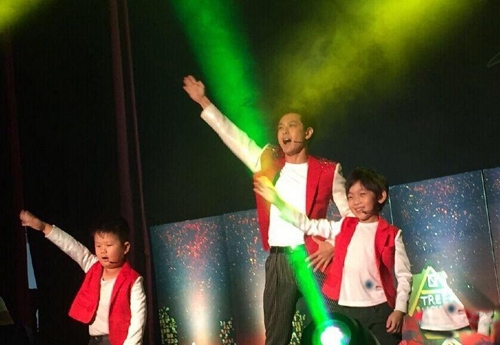 7月9日晚,林志颖在微博晒出一组与儿子Kimi同台共舞的照片,,并写道:“今天参加kimi学校的成果展和kimi共同跳了一段不是每个恋曲都有美好回忆,kimi跳的比我还棒哦!”照片中,林志颖与Kimi穿着红白演出服,父子俩颜值爆表网友怒赞