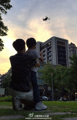 7月1日,林志颖通过微博晒和KIMI玩耍的欢乐照片,并称:“教Kimi玩直升飞机,Kimi说让他飞看看,结果……结果我又要爬树了。”照片中,林志颖蹲在地上手把手教Kimi玩直升飞机模型,因为Kimi技术不过关,飞机落在了树上,林志颖不得不爬树去为Kimi取挂在树上的模型。