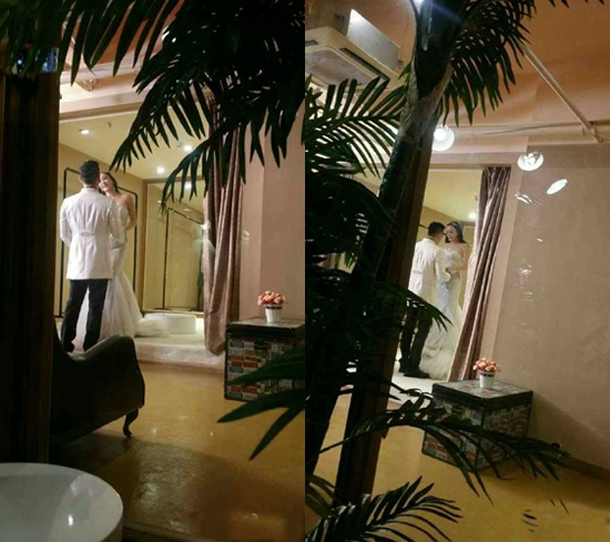 近日,网上曝光钟丽缇、张伦硕两人在婚纱店试婚纱的照片曝光,不知是否真的好事将成。