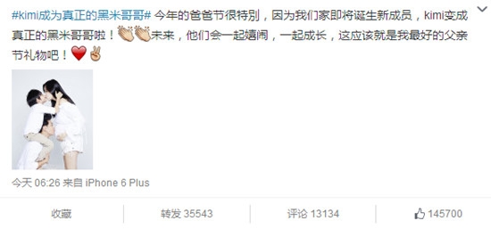 网友纷纷送上了祝福,“恭喜kimi,恭喜小志,恭喜米米妈”“太幸福了,祝福!”“希望给kimi生个小妹妹!”