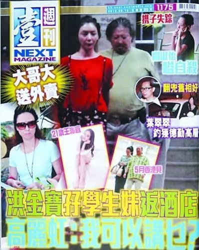 2012年9月,即将当爷爷的洪金宝被爆与21岁王沁宜两人酒店开房四天三夜,网友直呼洪金宝重口味,玩起爷孙恋。但是遭到网友质疑只是真爱还是利用。动作巨星洪金宝是位多才多艺的演员,从演员到导演以至于电影出品人,洪金宝可谓是香港影坛的大哥大。近日,洪金宝的儿媳妇周家蔚在微博中秀出大肚照,脸上尽是幸福。但媒体在日前却曝出一猛料,称今年63岁的洪金宝恋上北影一名21岁的大学生王沁宜,两人在横店四天三夜出入酒店的照片被曝光,网友很是吃惊。年龄差达到42岁的“恋情”更是遭到大家的质疑,许多网友纷纷质疑王沁宜是借机上位,并称两人的恋情不会长久。